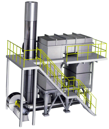 氧化后的高温气体热量被陶瓷蓄热体“贮存”起来用于预热新进入的有机废气,从而节省燃料,降低使用成本。氧化后产生的高温烟气通过陶瓷蓄热部分,由于陶瓷具有良好的蓄热性,从而使炉腔始终维持在很高的工作温度,节省废气预热、升温的燃料消耗。陶瓷蓄热部分由两个或两个以上腔室组成,热解后的相对干净的气体在进入尾气处理系统或直接排放前需对每个腔室进行吹扫保证 VOC 的去除率。