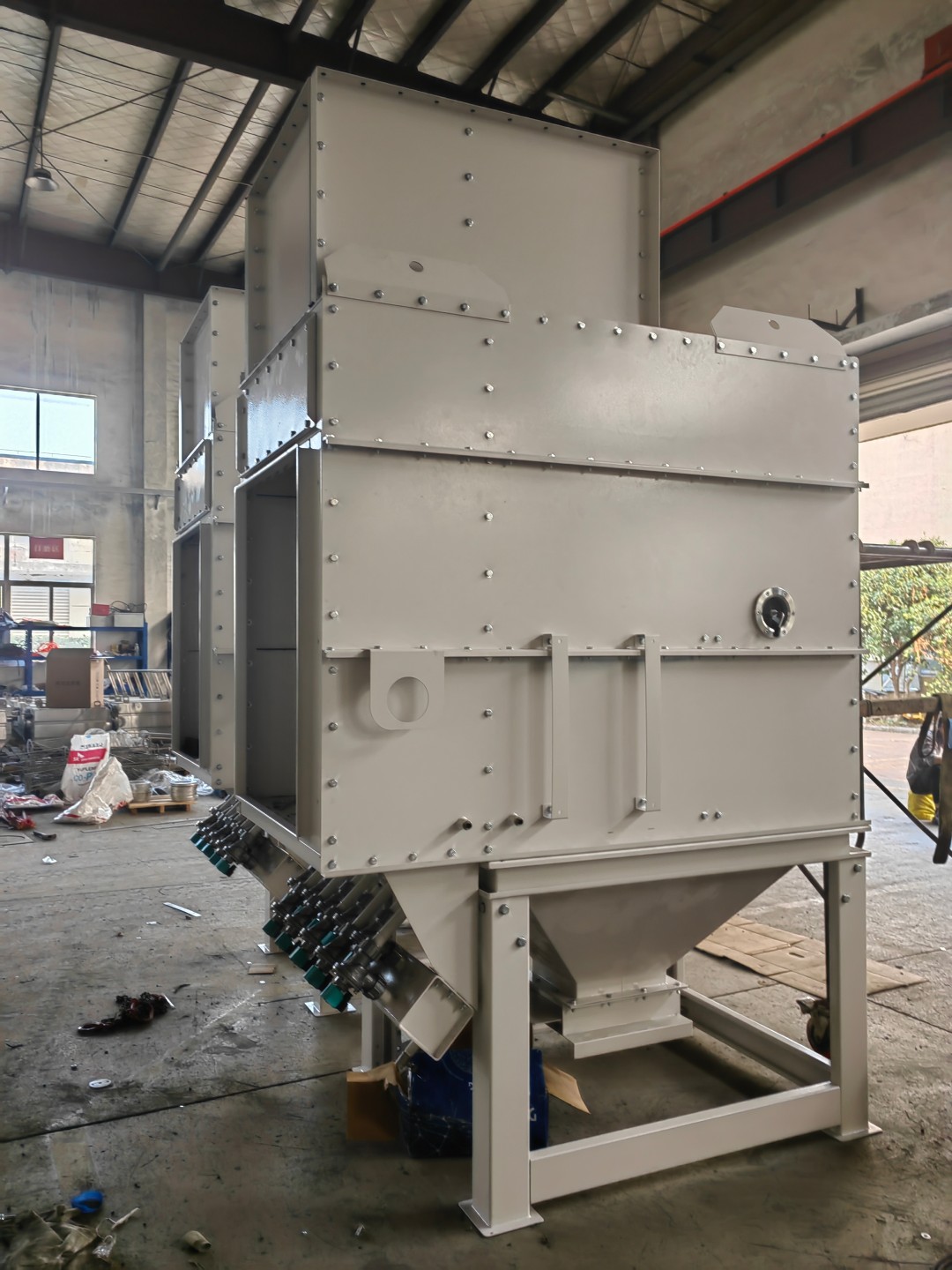 EBMC系列脉冲扁布袋除尘器工作可靠,便于维护。除尘布袋的横截面为扁圆型,此款设备结构简单、紧凑、合理,采用间隙较小的扁布袋布置形式,在保证布袋过滤面积不变的情况下,降低了外形尺寸,运输方便,降低了运输费用。